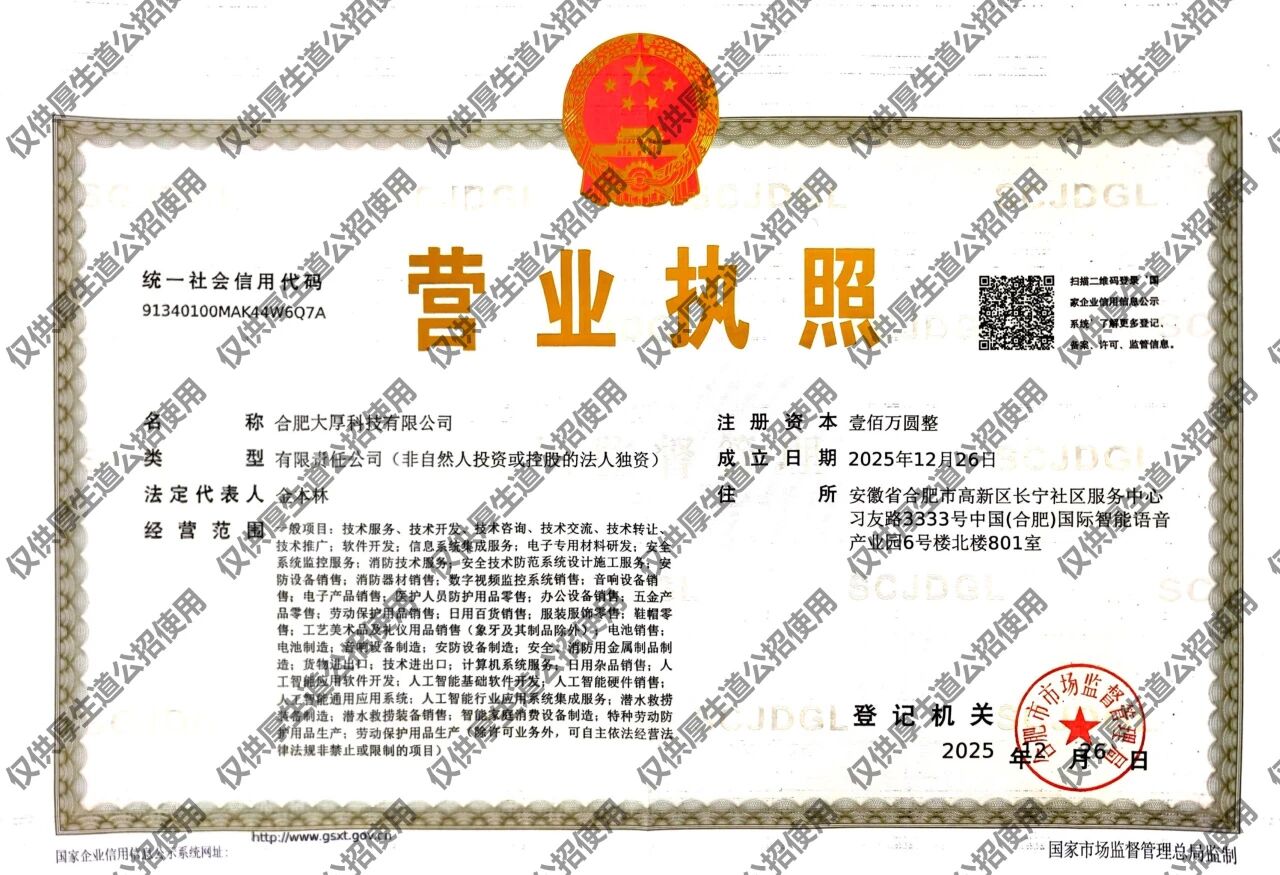 今天,大厚科技(合肥)有限公司正式入驻国家级人工智能产业基地——中国声谷。这不仅是地理空间的迁移,更是企业以“初心”赴“征程”、以“担当”向“未来”的庄严宣告,标志着雷公王品牌在智能声防与应急安防领域开启了全新的发展篇章。